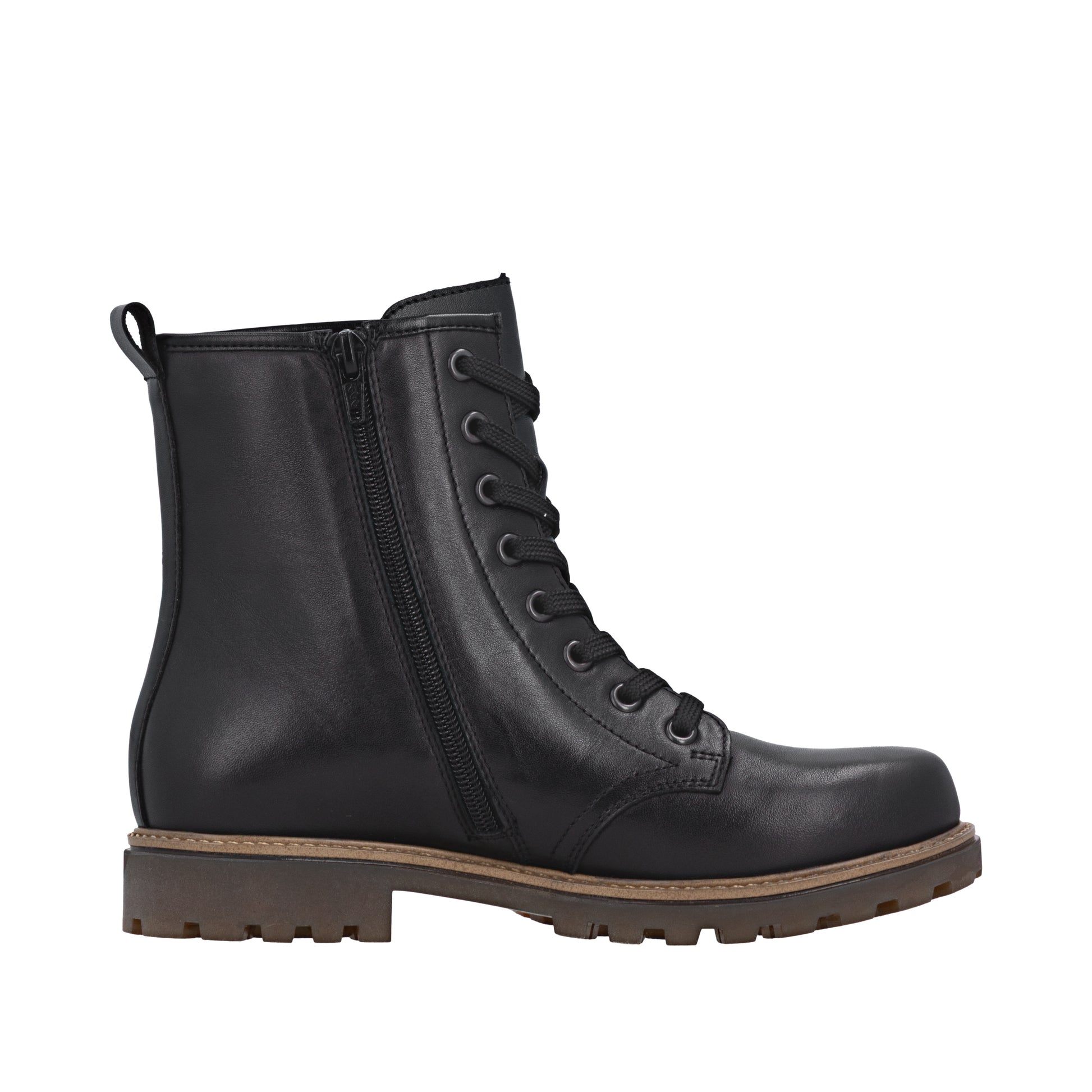 Clear the stage! The black remonte lace-up boots made of smooth leather are an absolute must-have in every shoe cupboard. The clever combination of lacing and zipper makes the shoe easy to put on and take off. A cushioning and grippy sole and the padded and removable insole are further arguments for this model. The comfort width offers enough space for the feet to feel comfortable even when worn for longer periods. The remonteTEX technology keeps the feet dry in cold, damp weather. The boots are equipped with a light microvelour lining. Grab it, girls! |