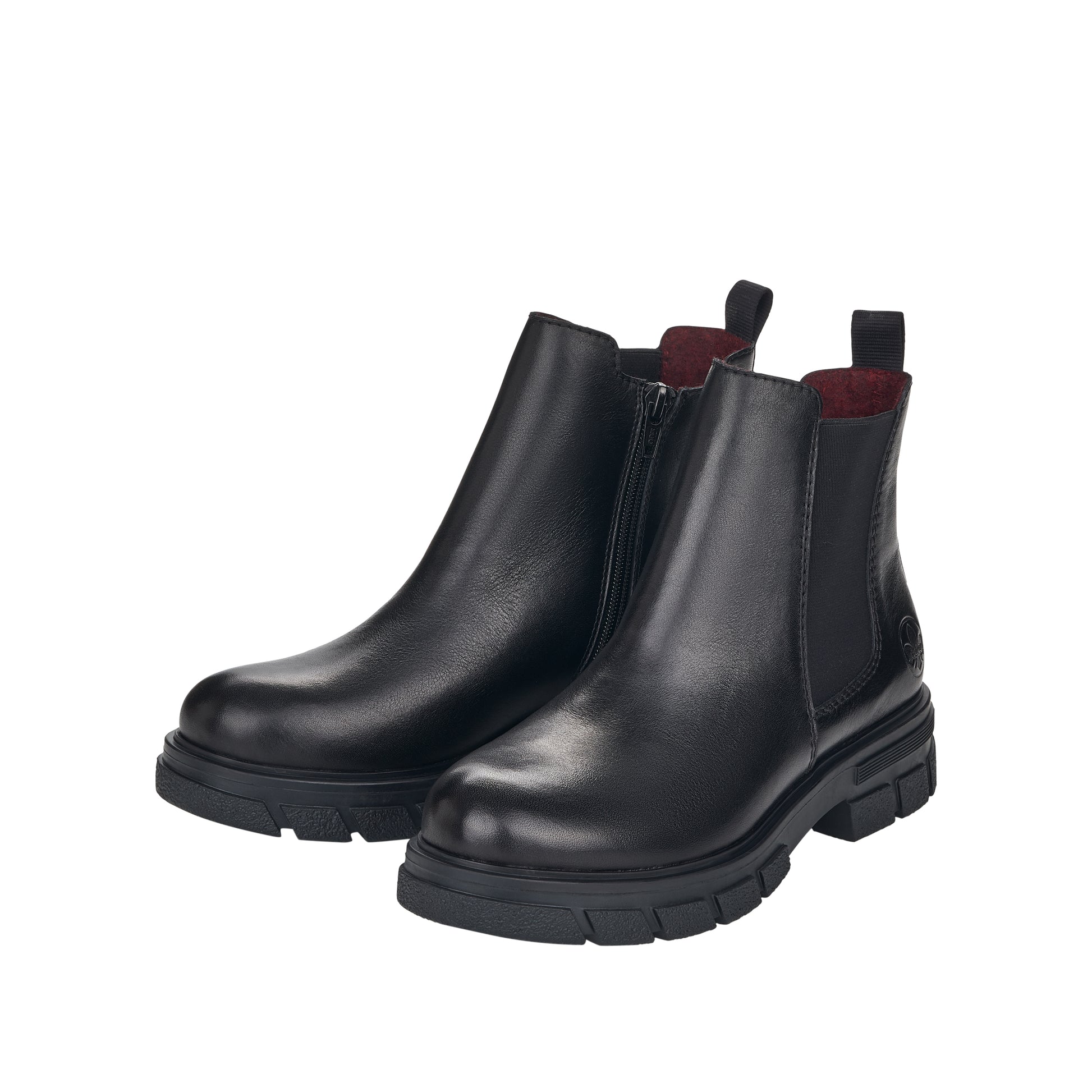 They follow you wherever you go! These black Rieker Chelsea boots made of smooth leather are perfect for every day. Thanks to the zipper and the elastic insert, putting on this model is child's play. The sole is grippy and ensures a good traction at all times. In addition, the cover sole is extra soft. 100% favourite shoe potential! |
